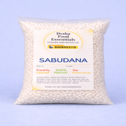 Sabudana is made from carefully processed tapioca starch and known for its purity, uniform size, and smooth texture. When soaked and cooked, the pearls turn soft and fluffy, making them perfect for preparing sabudana khichdi, vada, kheer, and other traditional recipes.